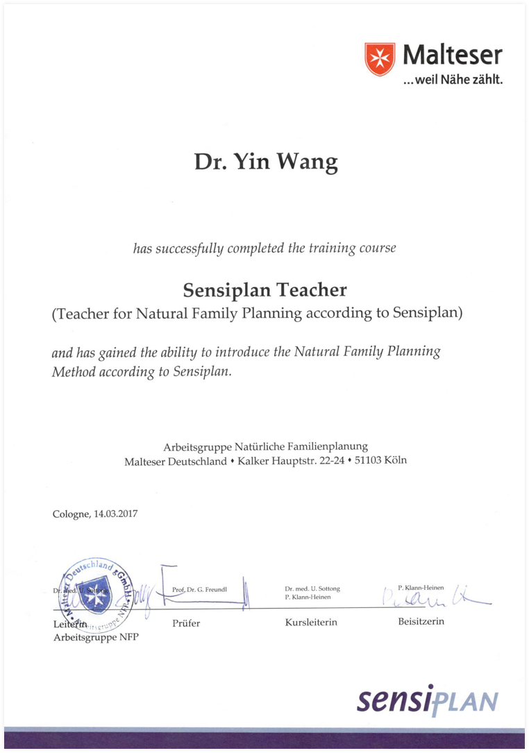 中国首位经Sensiplan®认证的自然孕育法培训师王胤博士跟Sensiplan®创始人Prof.G.Freundl